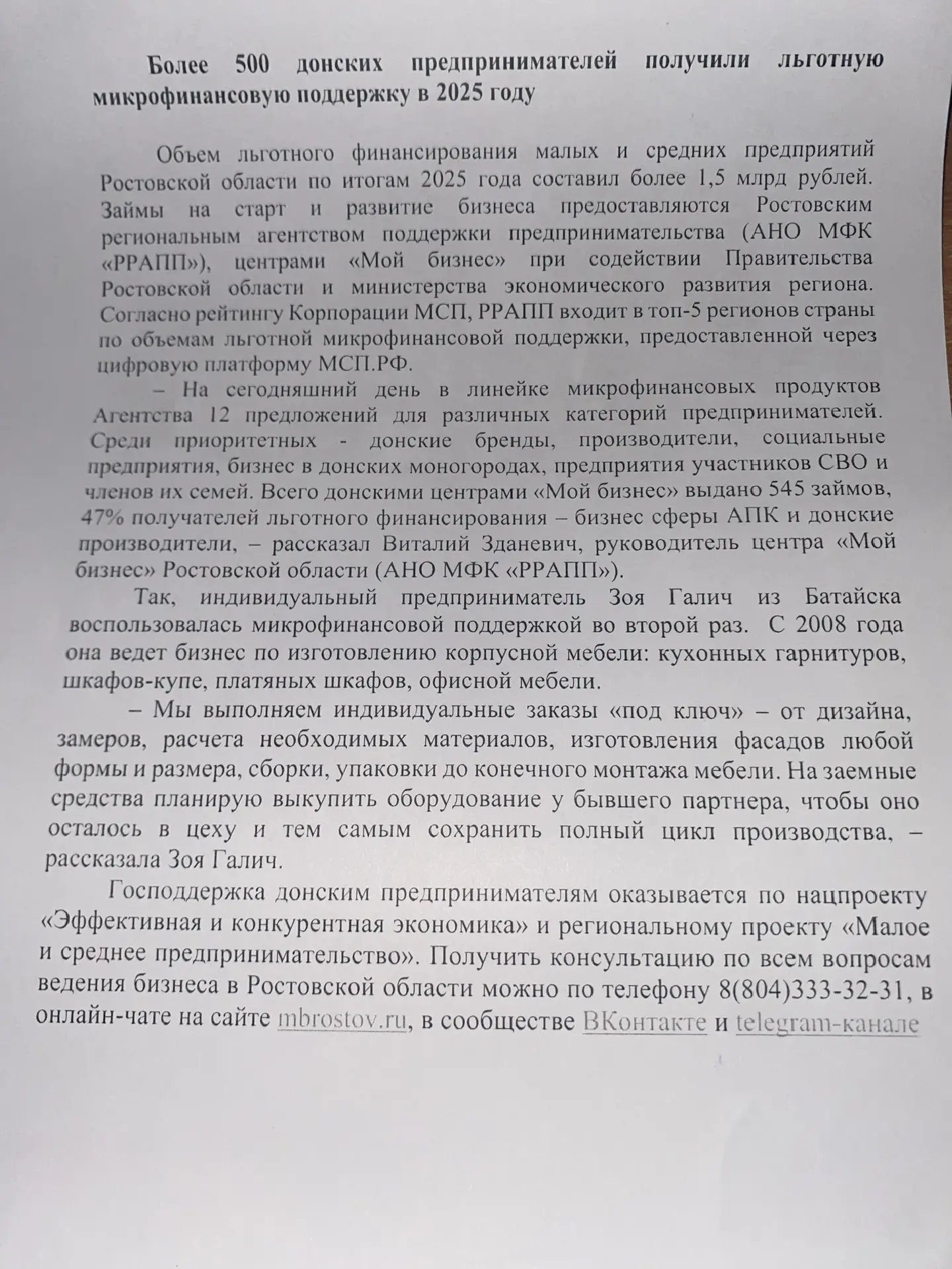 Более 500 донских предпринимателей получили льготную микрофинансовую поддержку в 2025 году